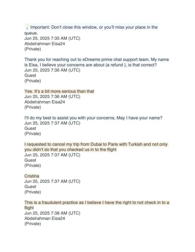 On my way to the airport, I called the second airline. After waiting for 15 minutes, they confirmed that they had no record of a passenger with my details from eDreams and mentioned that this problem was common.