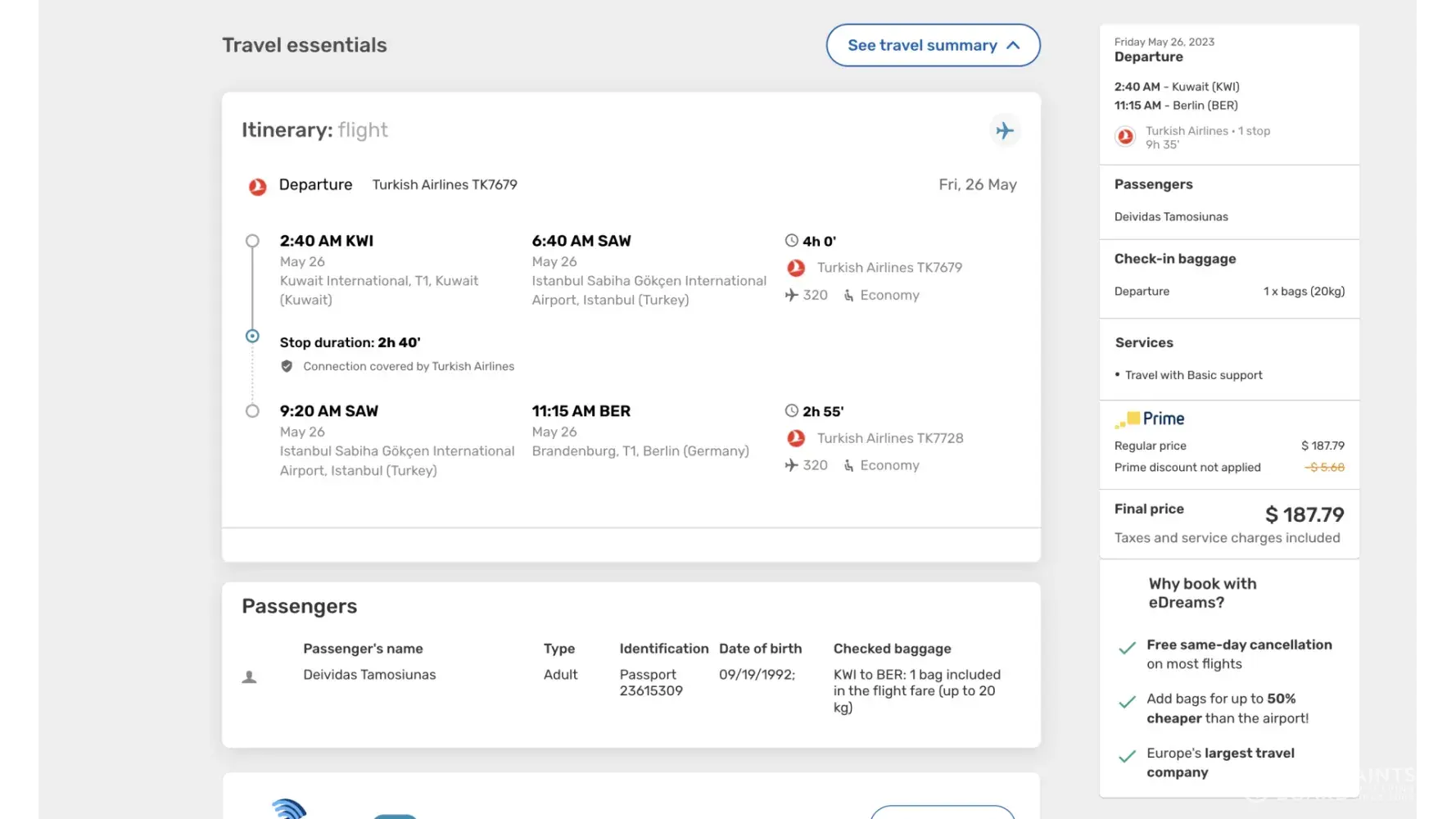 I recently booked a Flight & Hotel deal with Edreams from Cyprus to Greece.