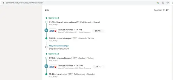 16th April Kuwait Istanbul TK 773 booking code :UNPMSP Forced to cancel