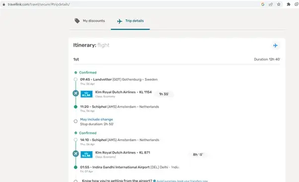6th April 2023 Gothenburg Amsterdam KL 1154 booking code : VZPDQO