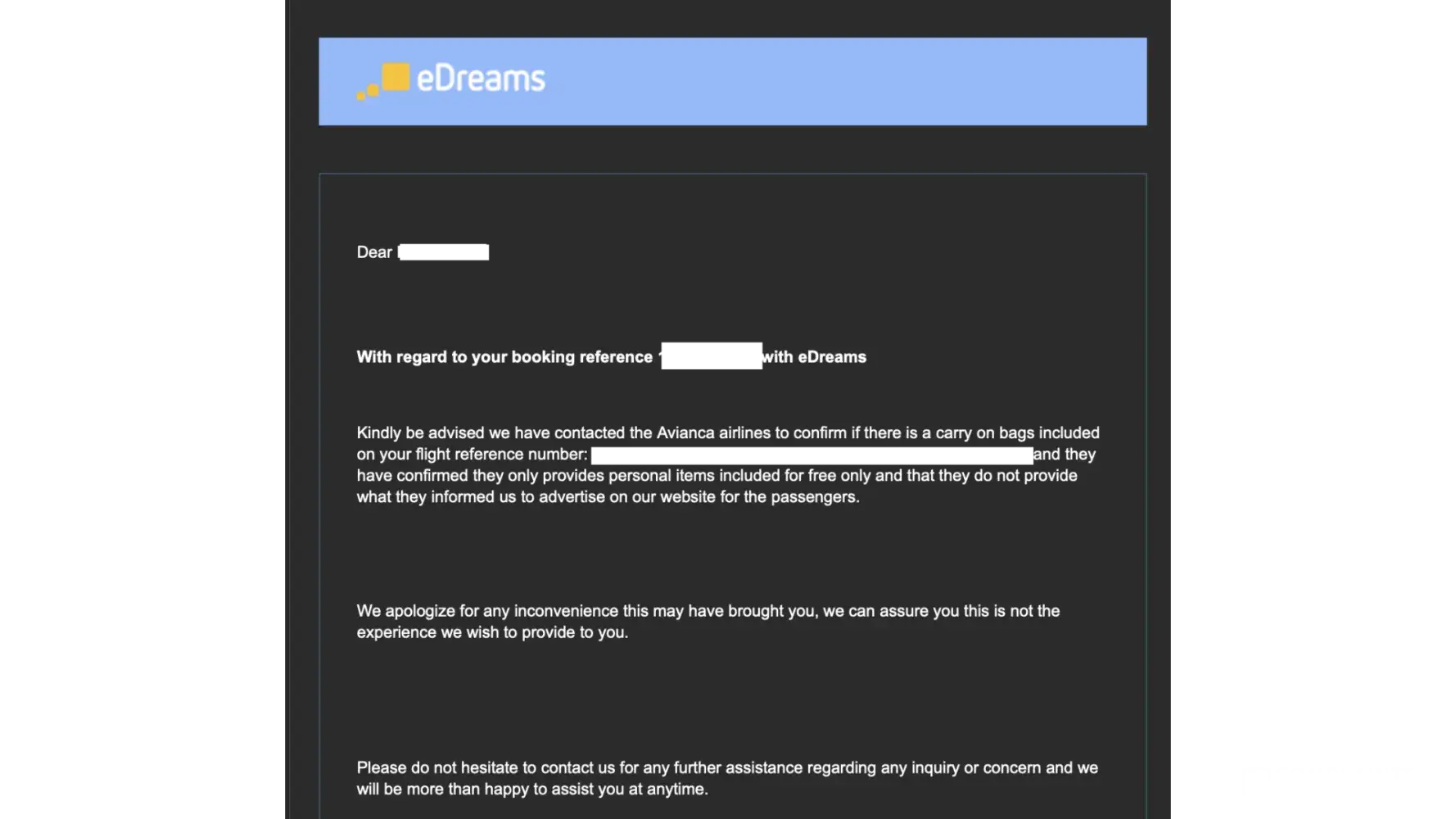 When I was booking a flight it said I get 20kg checked-in luggage (foto attached). When checking my booking, it says that there's no checked-in luggage included (another foto attached). I simply should've booked with an airline. Also, 24hrs later I am not even sure if they confirmed my booking, I am going to contact the bank to block money they eDream reserved and leave this scam company for good.