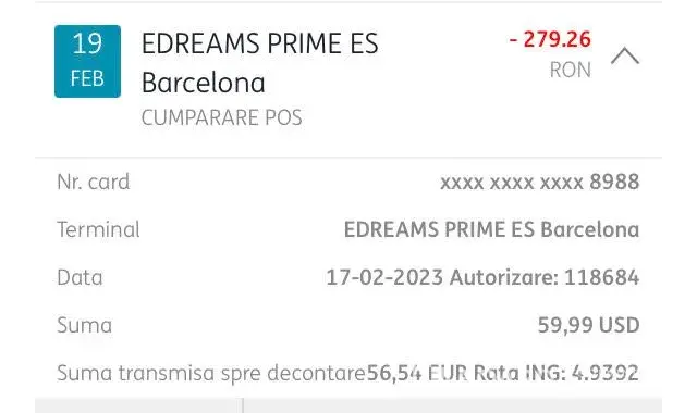 Ieri, 19 februarie mi s-au luat din cont 59,99USD pentru o subscriptie de cont Prime pe eDreams fara sa am nici un alt fel de cont pe aceasta platforma.