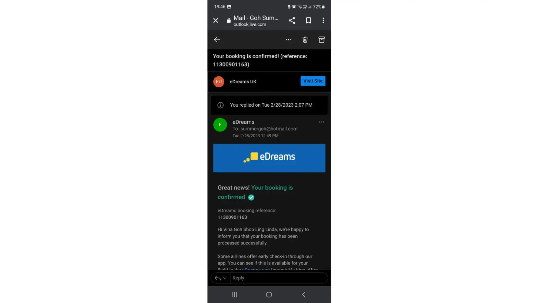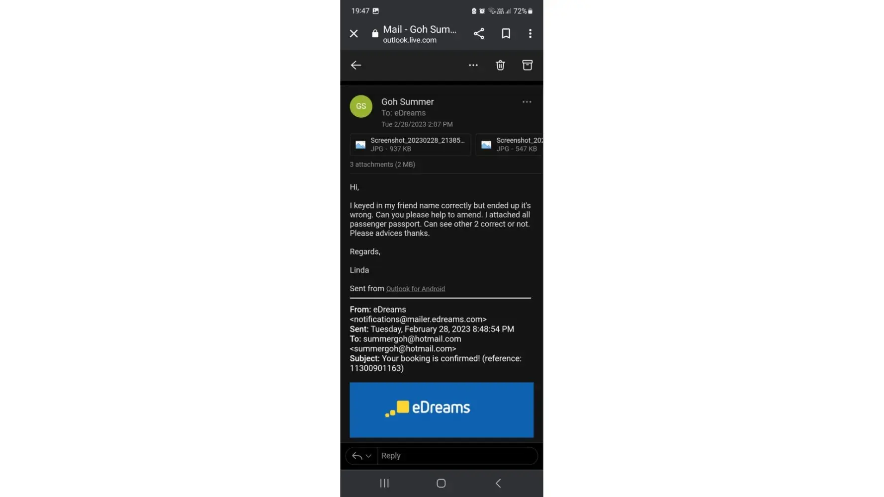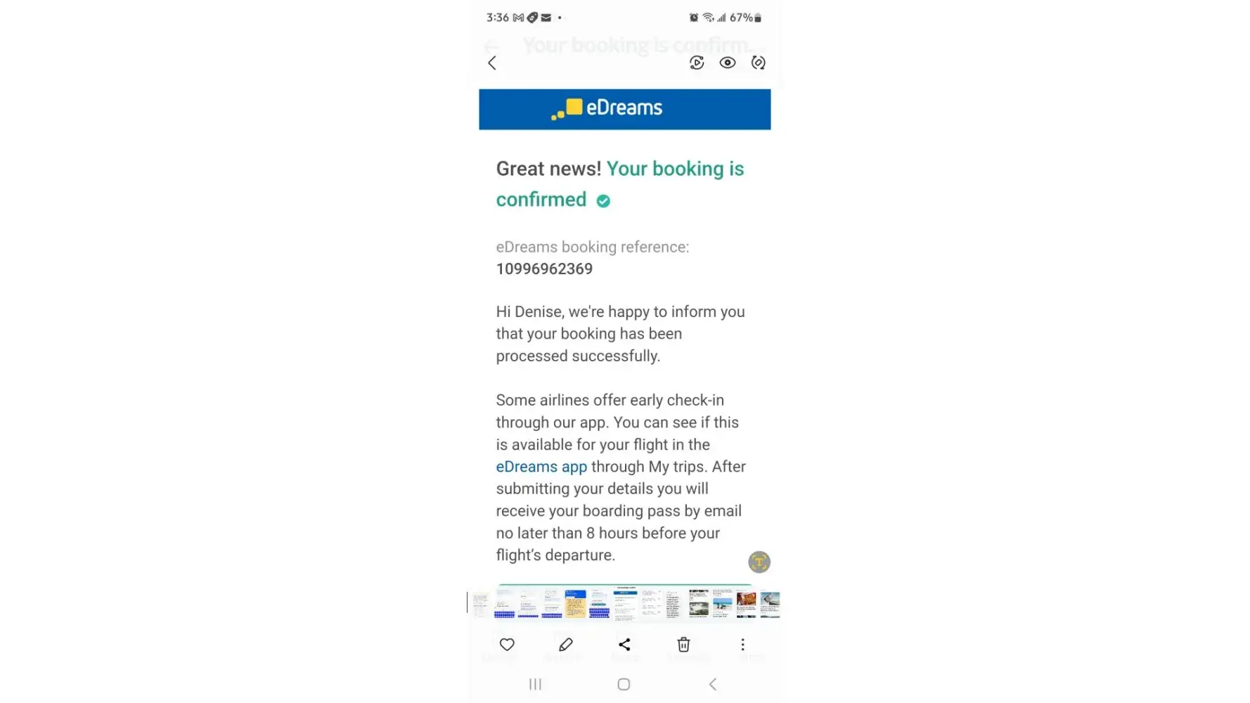 Edreams confirmation email