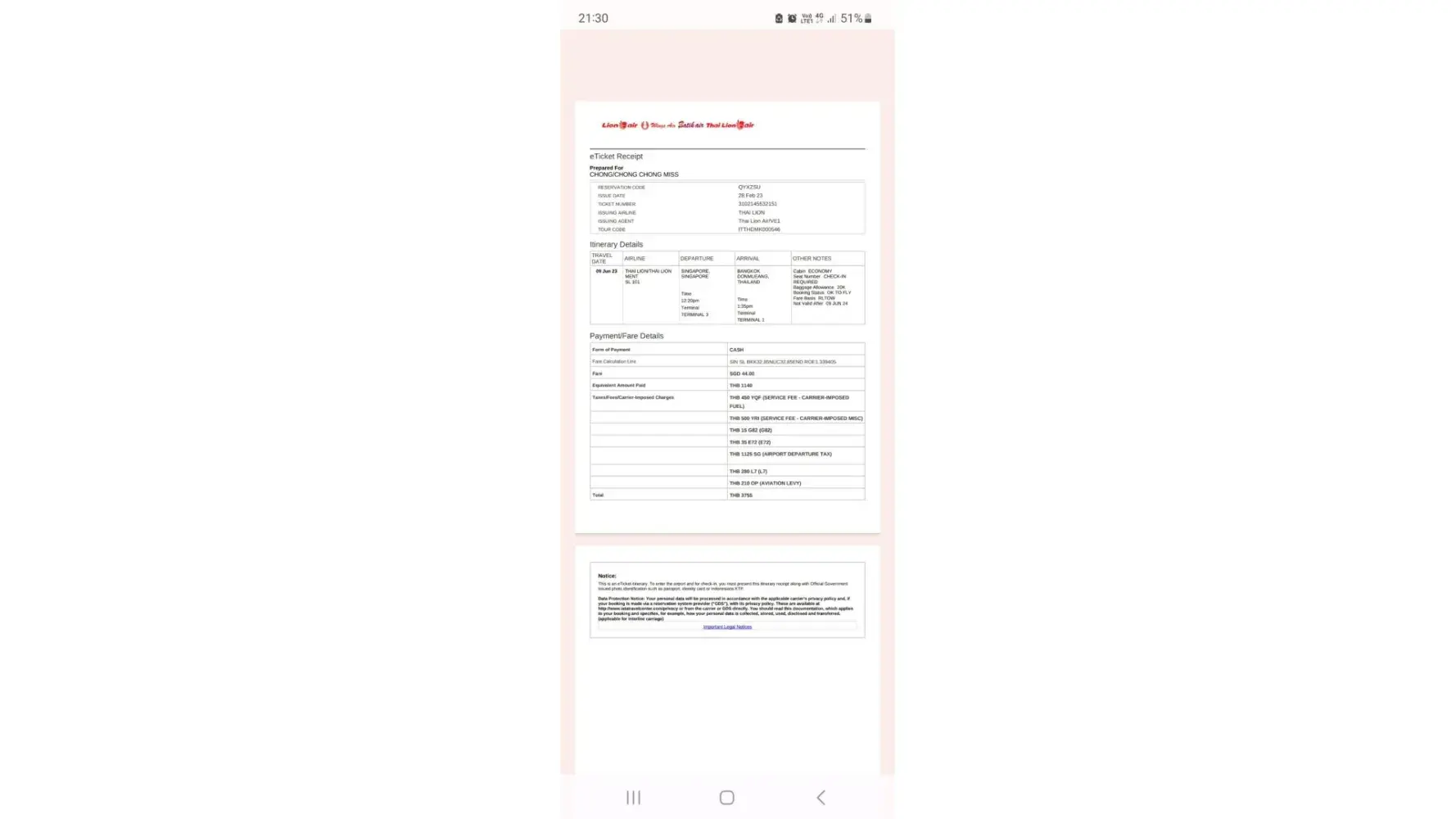 Flight ticket that was invalid