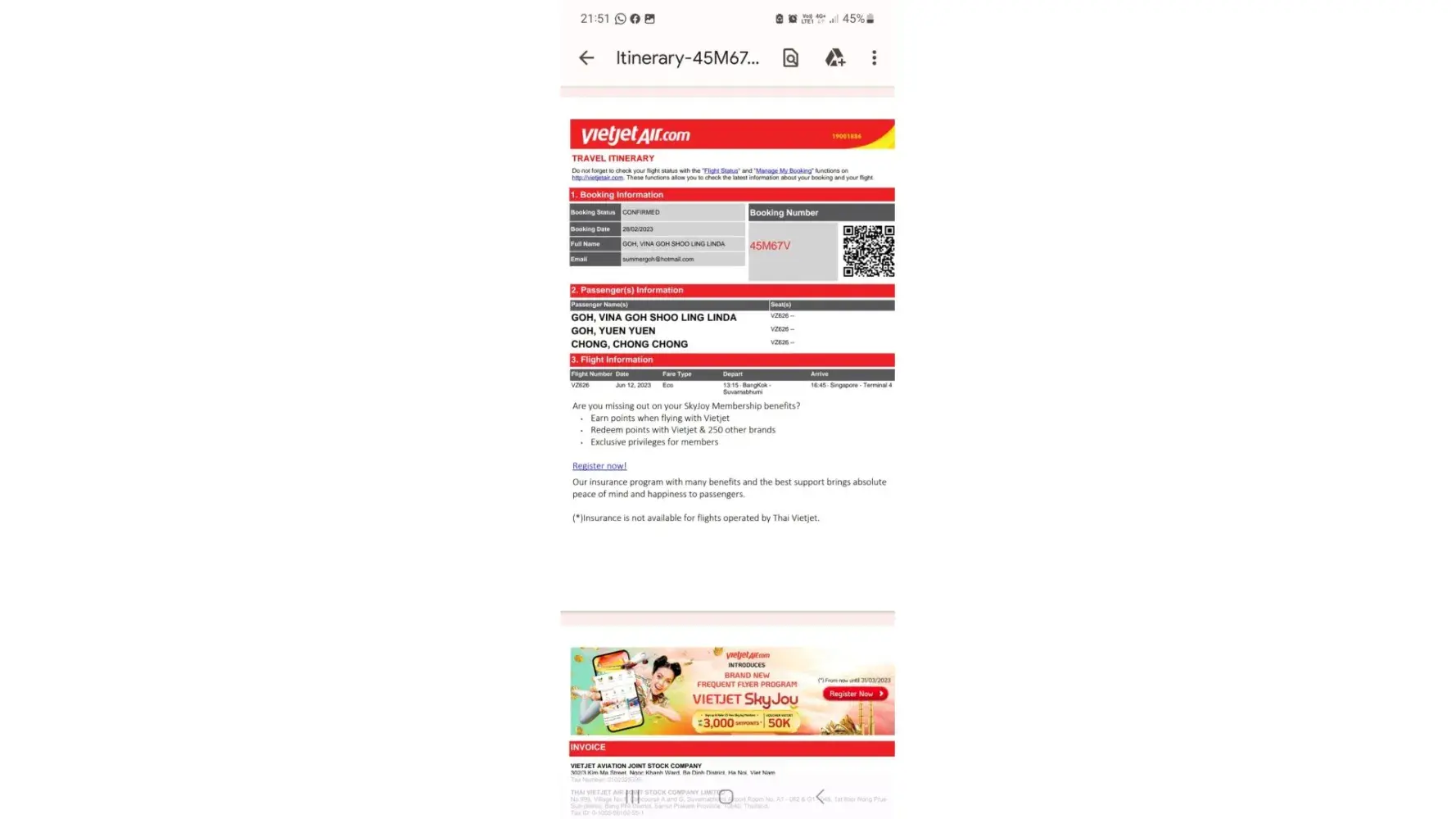 And booking reference is [protected]