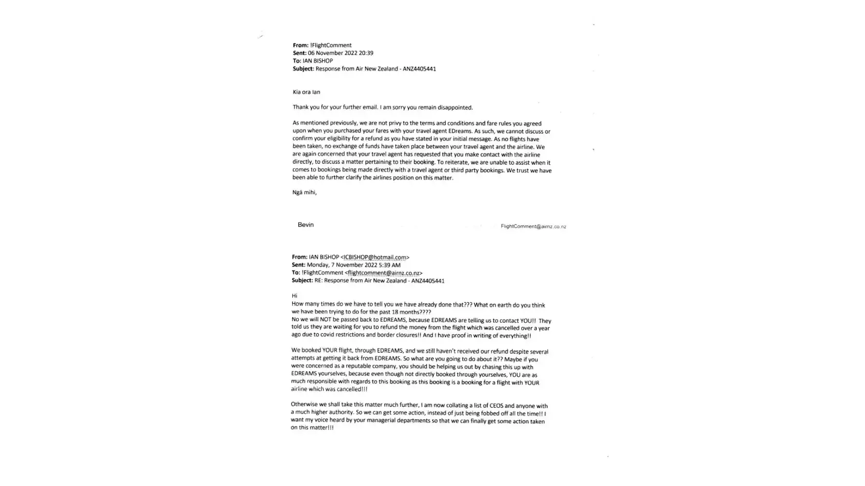 If you don't allow us to fly on this date or we get a refund, expect a huge lawsuit!