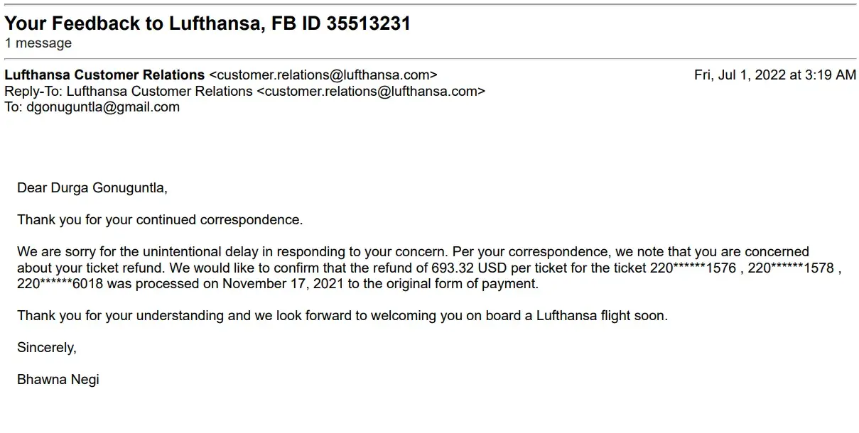 Attaching communication from Lufthansa and Edreams.