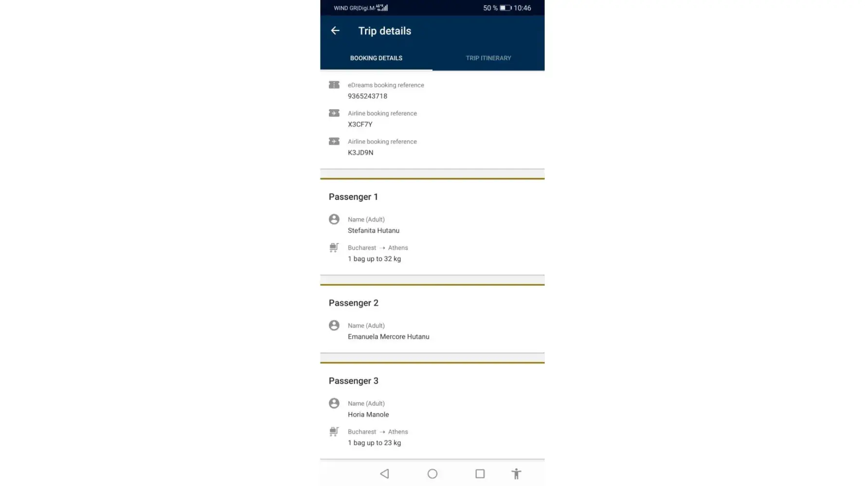 My name is Stefanita Hutanu. I bought 3 tickets ( OTP-ATH and return) from your platform.