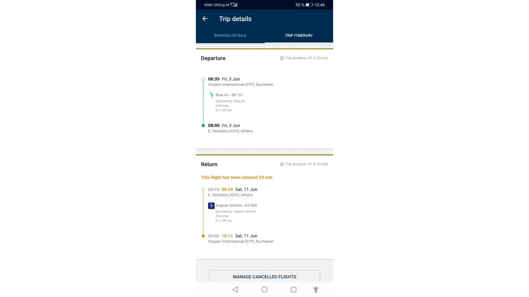3. BLUE AIR 0B161 (OTP- ATH) and AEGEAN AIRLINES A3 960 (ATH-OTP)