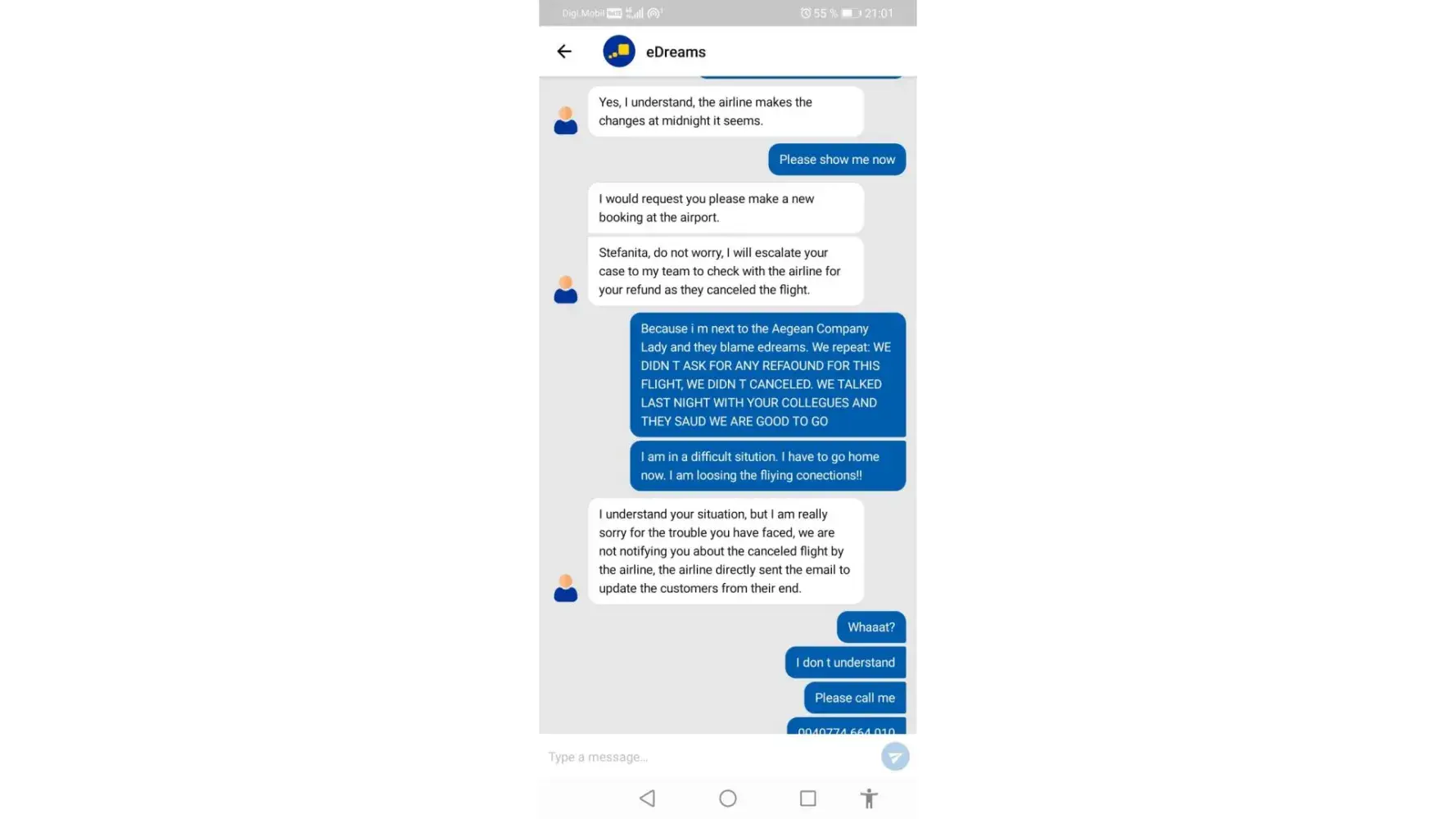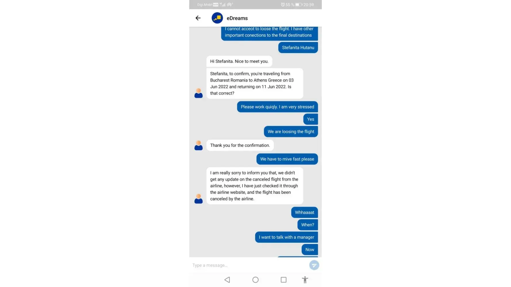 Now, here are my aspectations: to be paid for this trouble. I missed 2 days from my job, both me and my wife.The tickets back home I paid from my pocket, also the taxi back and forth to Athens and back again at the aeroport. The extra night spend in Athens with extra hotel, extra expanses.