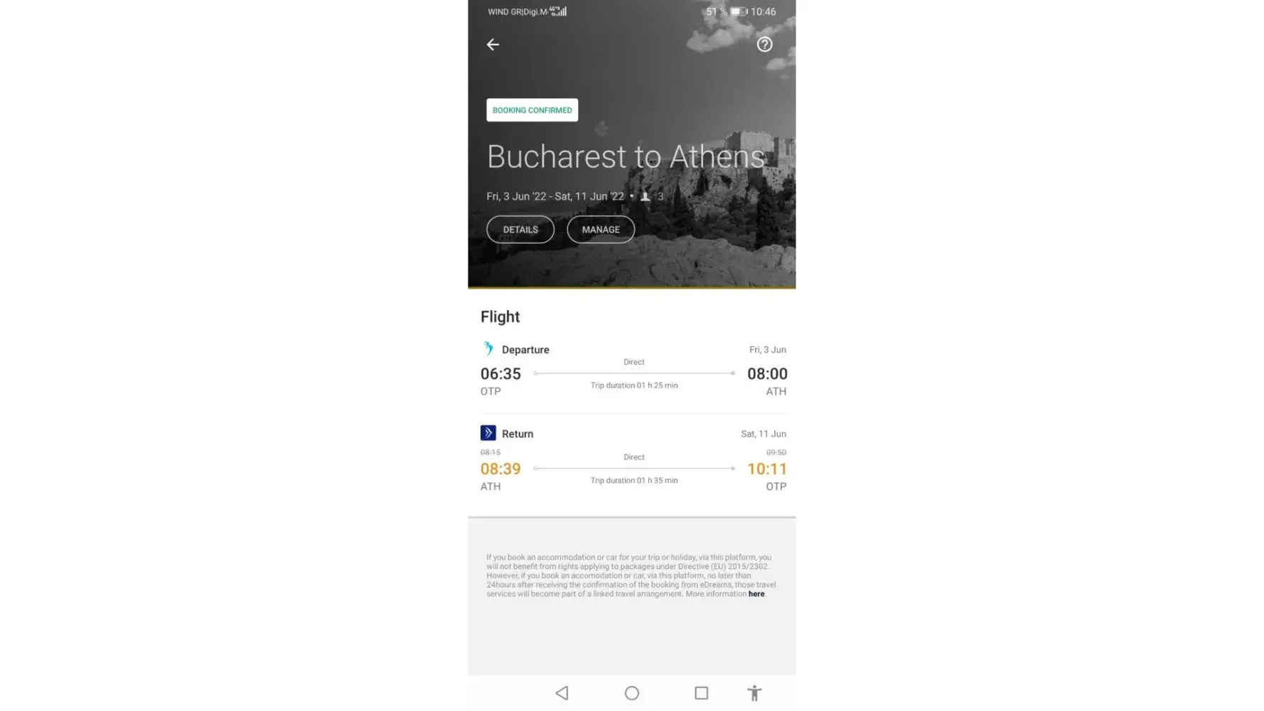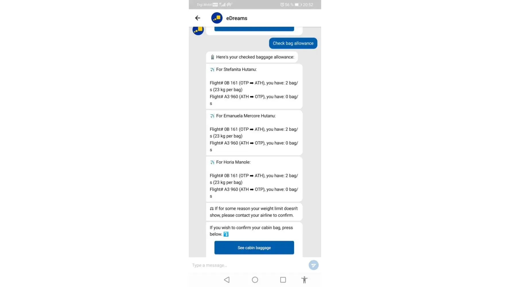 For the flight from OTP- ATH there were no issues. The problem came less than 2 hours from our return flight while being in Athens in the Aeroport waiting to check-in for going back home.