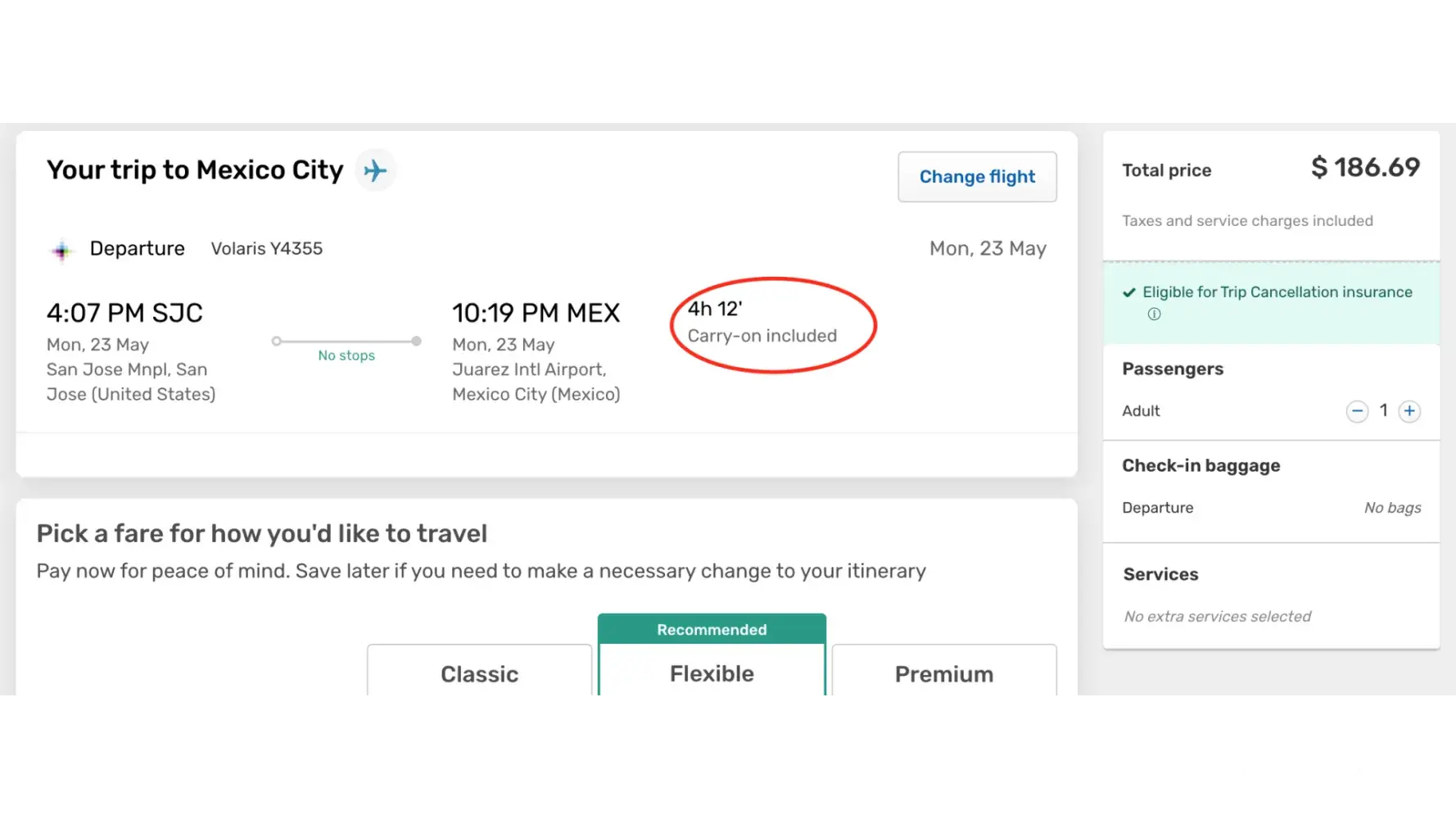 I booked a trip from US to Mexico using eDreams, on the booking information website it says the carry-on bag is included, but after I paid and the booking is confirmed I found out on Volaris that the carry-on is not included.