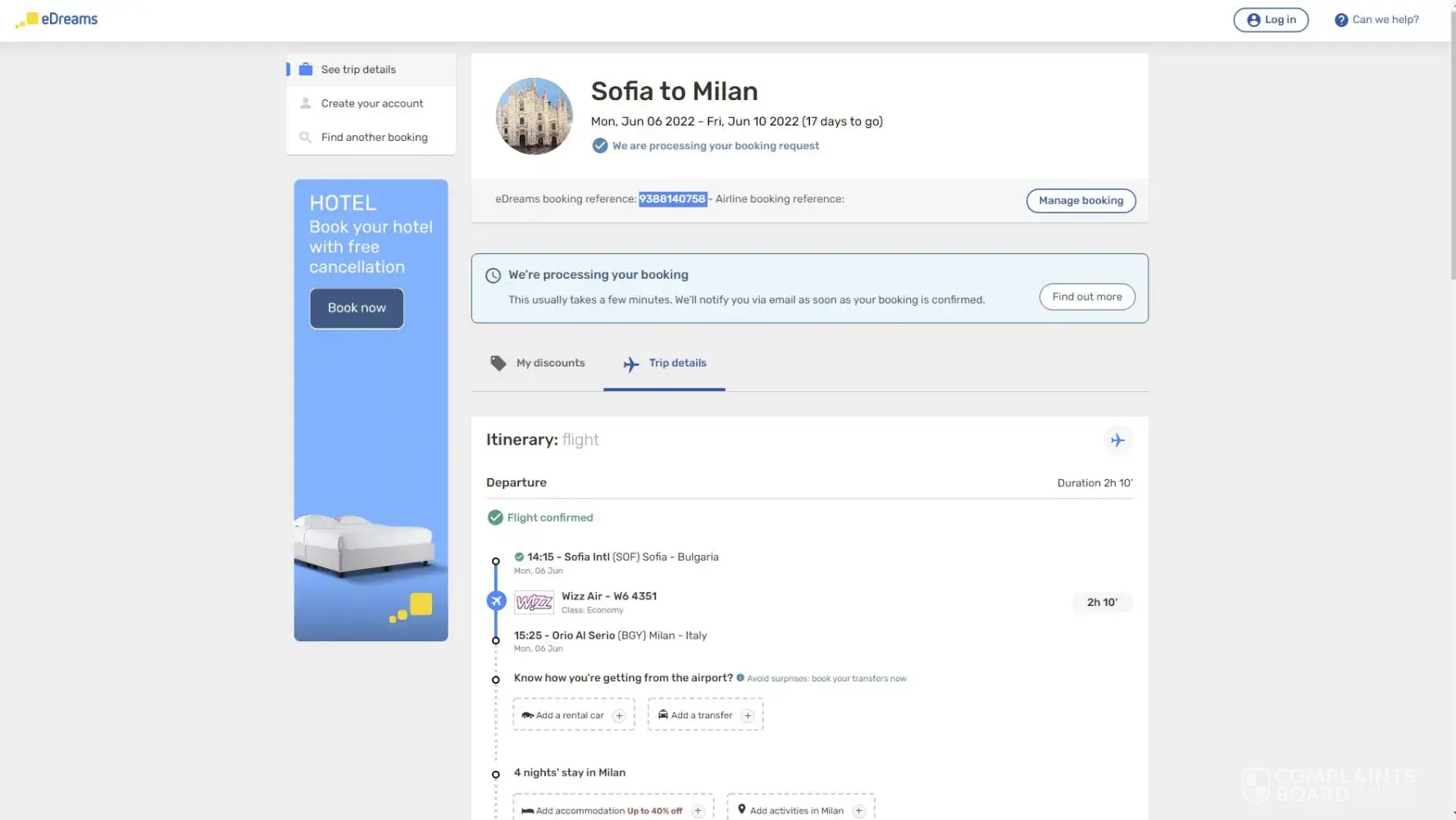 Last year, bought 3 plane tickets via edreams, a few days after Swiss cancelled their Prague to Geneva flight did request a refund. After spending time and efforts + high phone bills, a year after there is still no refund from edreams who shared that they are waiting for Swiss to reimburse the ticket. Secondly, edreams shared that they will not reimburse cost of check in luggage's. Called again last night and you get the walk around from their Indian call center. Do yourself a favor, stay away from edreams. NEVER NEVER AGAIN.