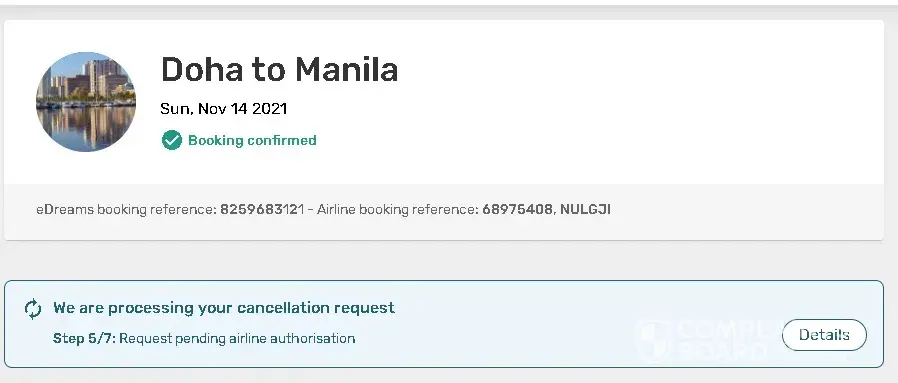 on nov 2021 i book a ticket from doha to manila via sharjah and dhaka. airline was cancelled the booking at the time of boarding. from the day 1 we are followup with edreams to refund the amount. and they given maximum time period of 6 months to complete the refund.