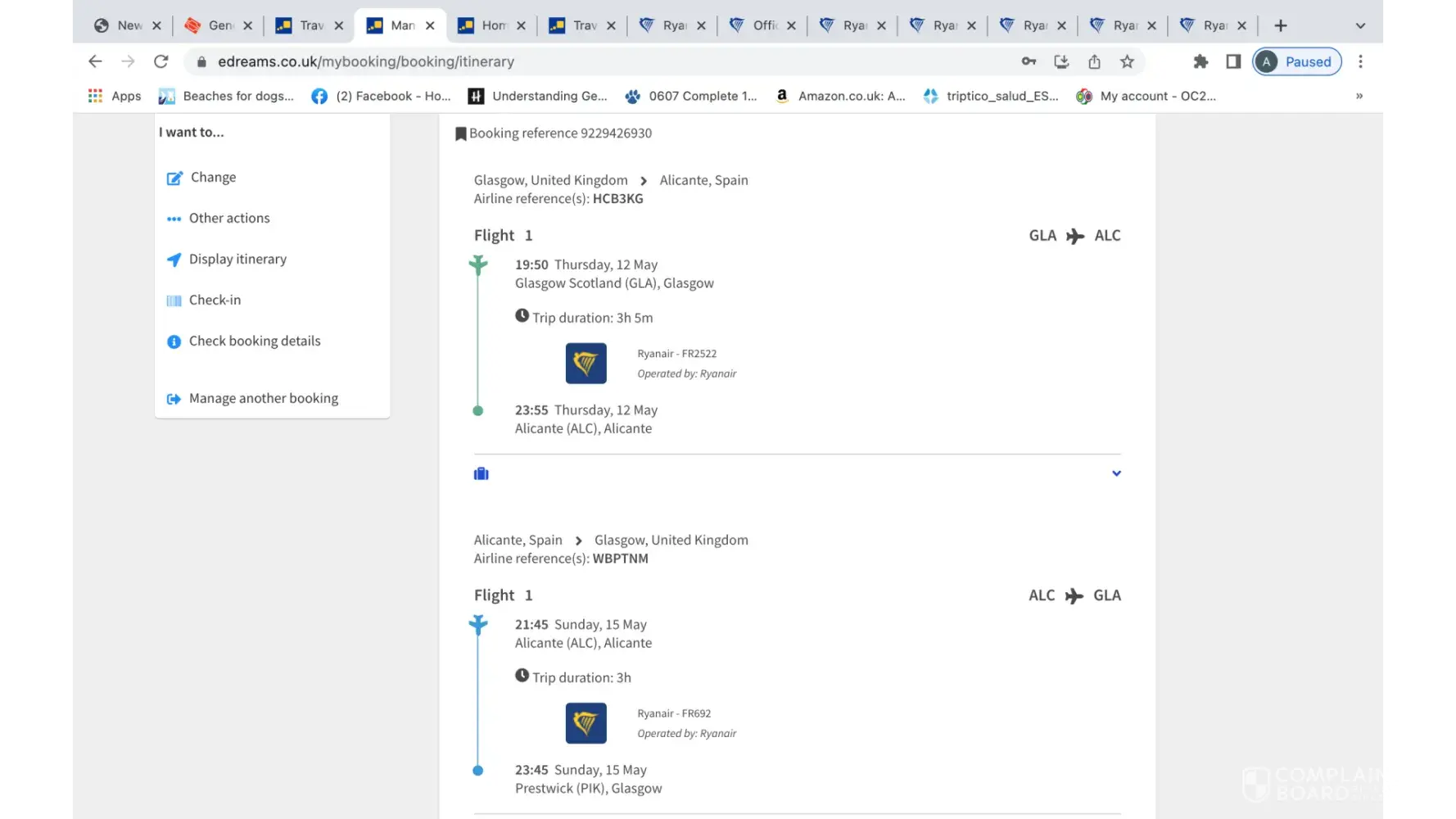 flights with ryan air from glasgow 12.5.22 to alicante return 15.5.22