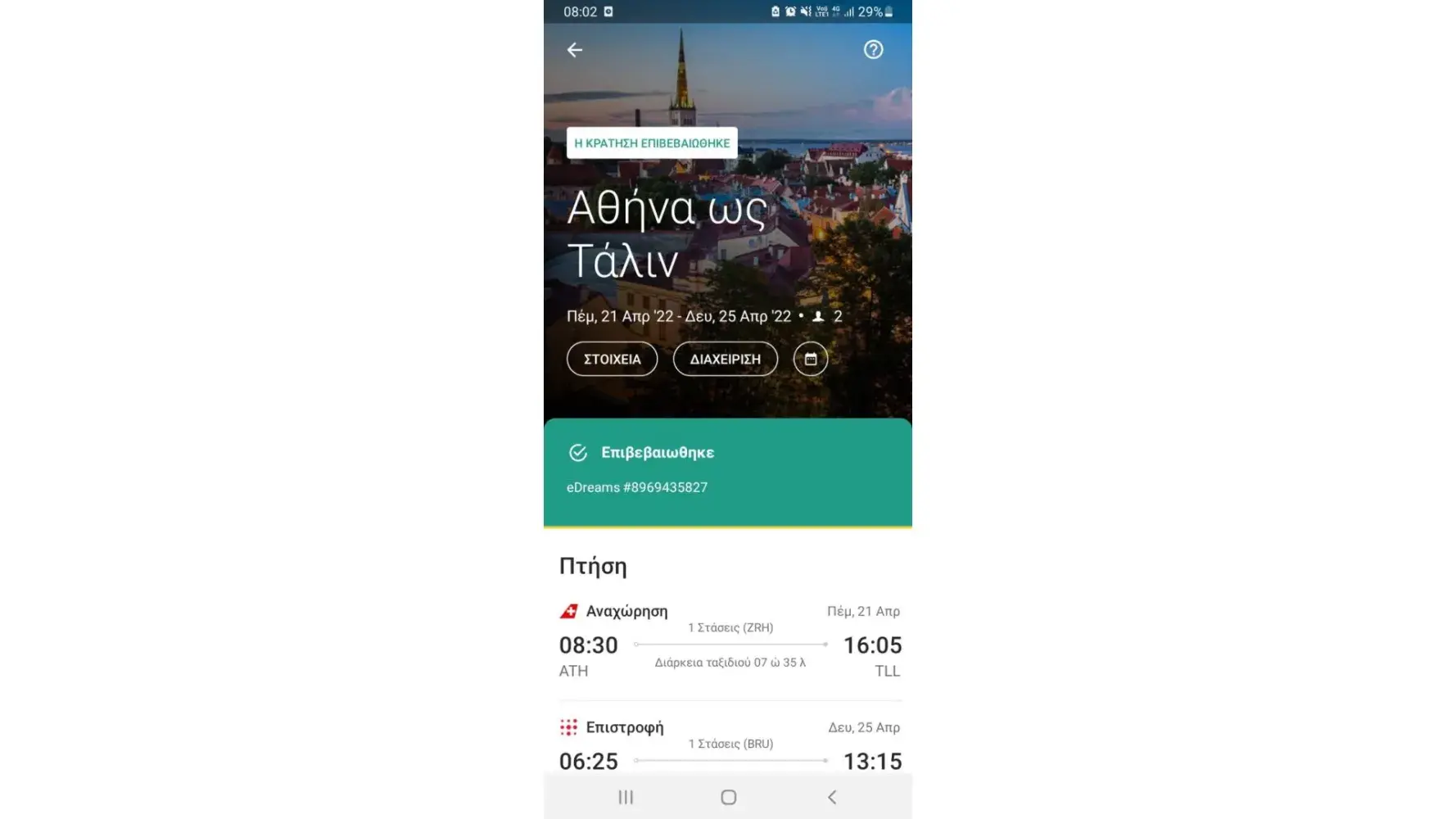 I booked 2 tickets to Tallinn for Easter holiday, departure 21/4/2022 with Swiss, back 25/4//22 with Brussels.