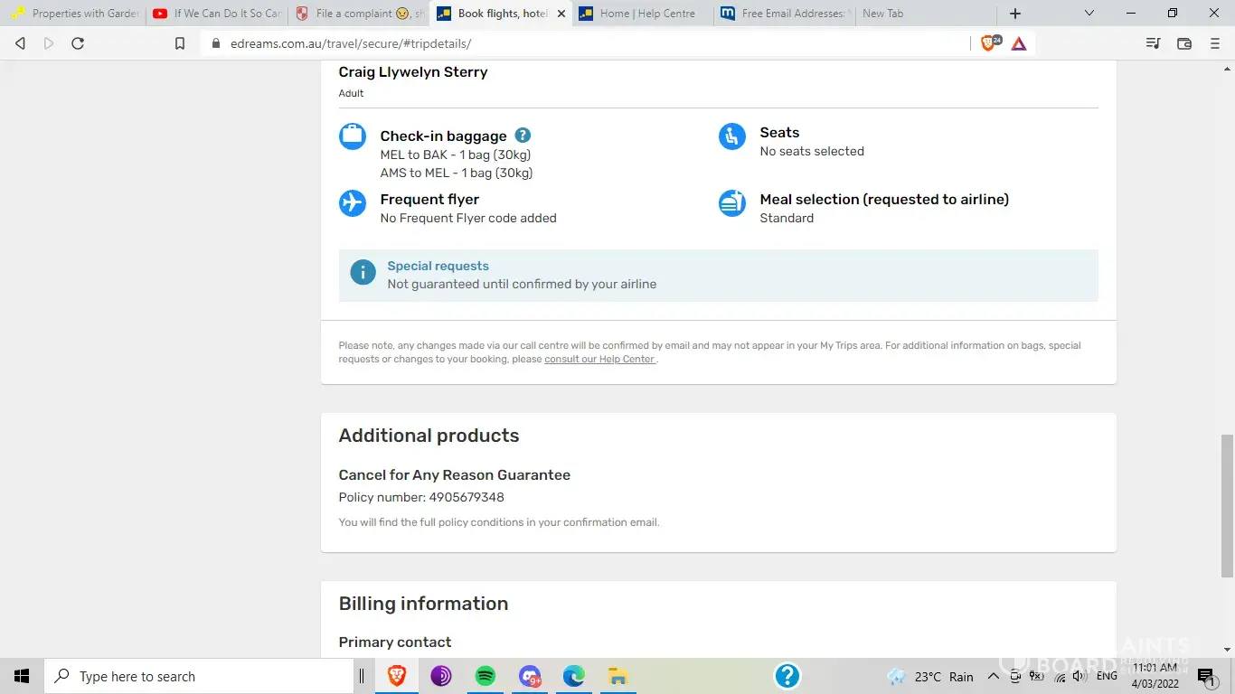 The airline referred me to eDreams as the flights were booked through eDreams. (I contacted them via Chat and FB options and both directed me to the travel agency)