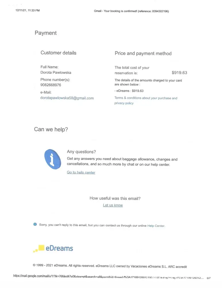 Reservation No. [protected] by eDreams.