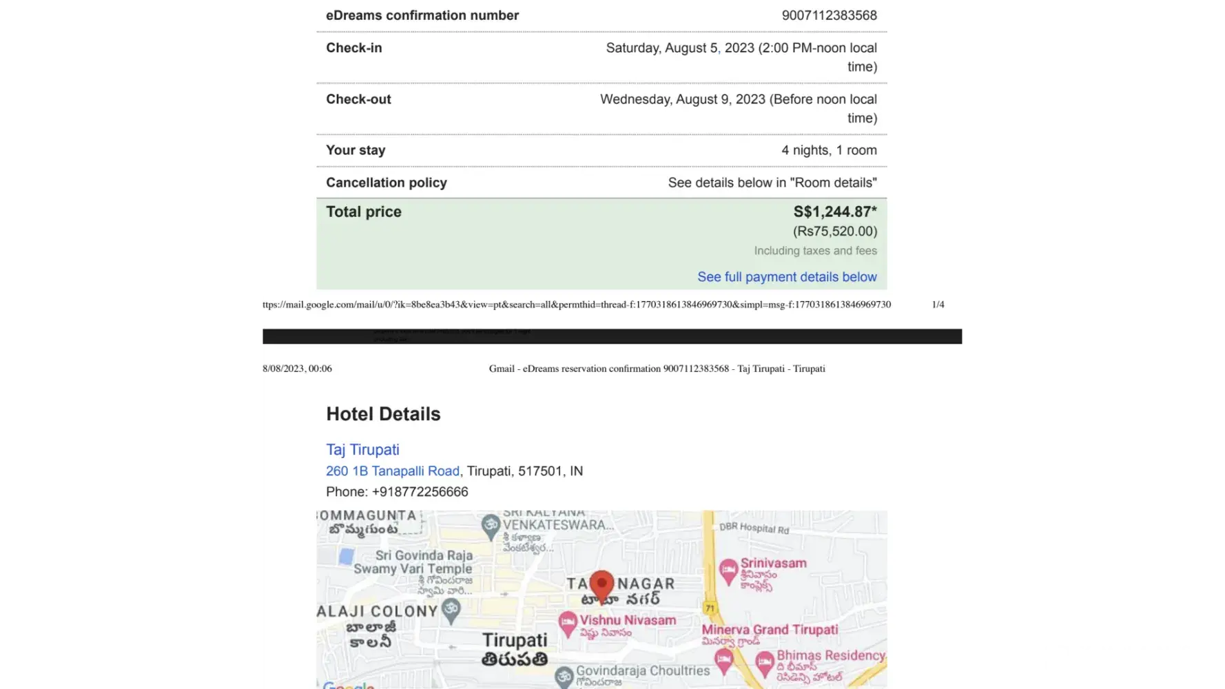 Hotel accommodation booking reference number [protected]/E dream booking
