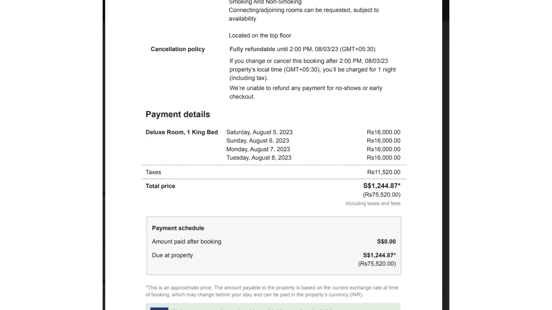 Subsequently upon arrival at the hotel I spoke with the reservation team and I had to pay an addidtional cost to have a Deluxe room as I had booked wit E Dreams.