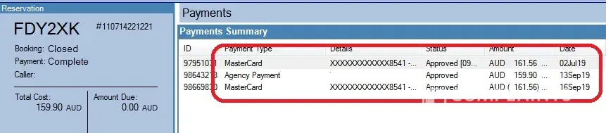 After the booking was confimed, I checked my bank statement the following date and found that $1463.6 was taken from my credit card, as well as airfare service charge of $21.67.