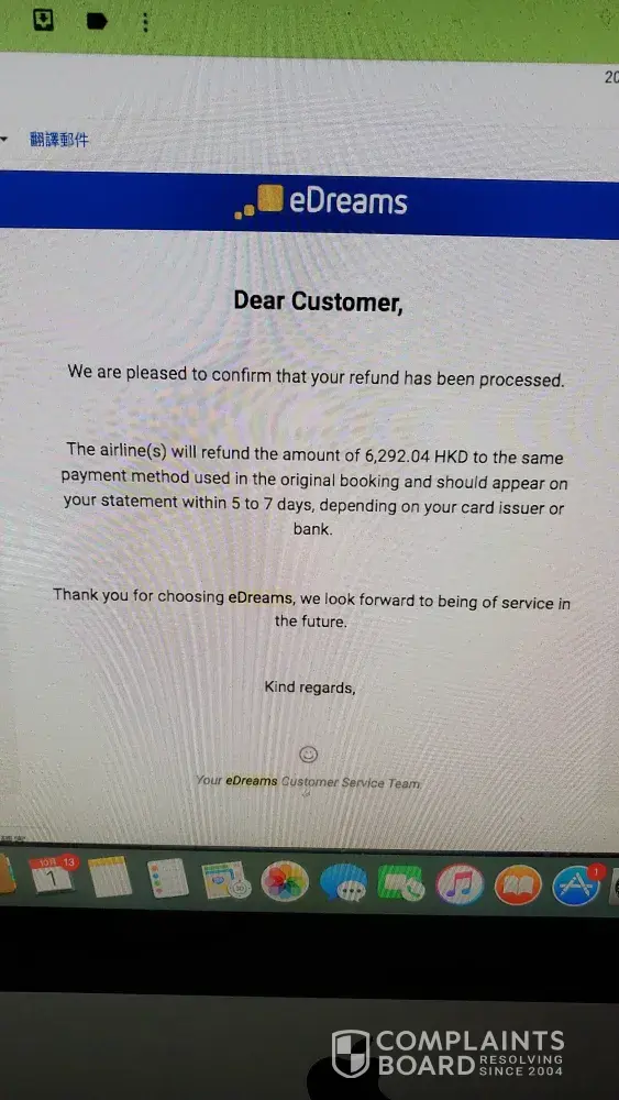 I called eDreams call center on 24.Aug to cancel my Tokyo trip in Jan.2020, I triple confirm with the colleague the refund amount and she told me the amount I will get back is $6292.04 HKD, thats why I agree with the refund and I got their email reply with the amount as proof.