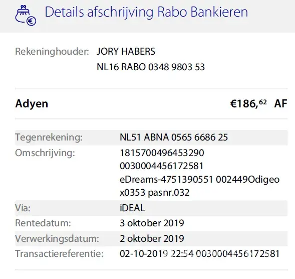 i booked a flight [protected]. Yesterday 2-10-2019 i paid through ideal, but encountered a error on the website. A screenshot of this error is added.
