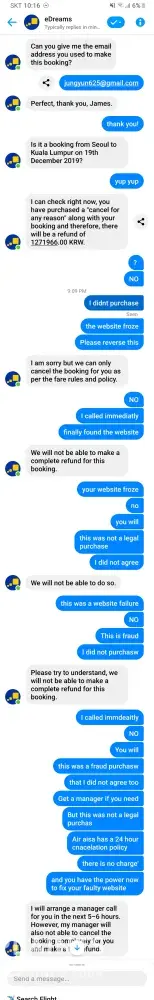 How is that not fraud? My wife 100% did not agree to they pruchase and they are trying to take advantage of her and scam her. Avoid edreams at all cost. This site is a scam