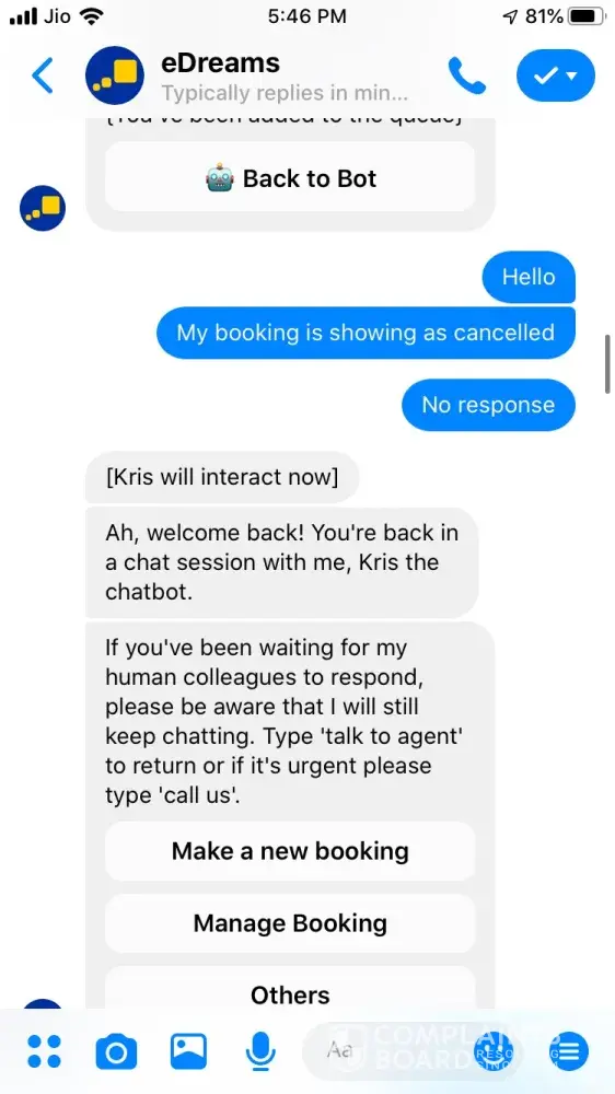 So I cancelled, I find it very unorganised, embarrassing and I feel sorry for the call operators, God only knows how much abuse they have to endure from irate and annoyed customers due to Edreams unethical and unprofessional trading .