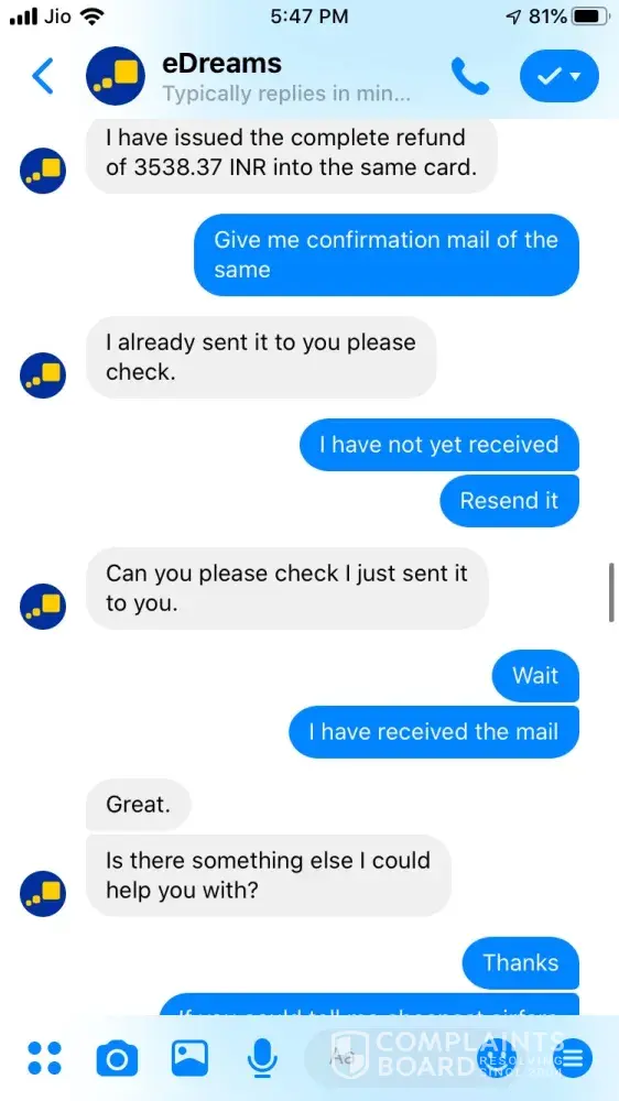 To all those out there who are planning to book through edream please do it only if you don't plan to cancel or change your flights ticket. This company will not refund you money. Don't bother sending them email or complaints because no one is bothered. They are rude and treat customers like nothing. This company has no heart. It's just a plain system taking order and giving tickets. Don't ever choose edream unless you cannot find any other agencies to get your ticket.
