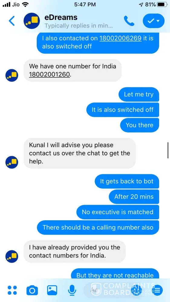 since then we have contacted Edreams numerous times-