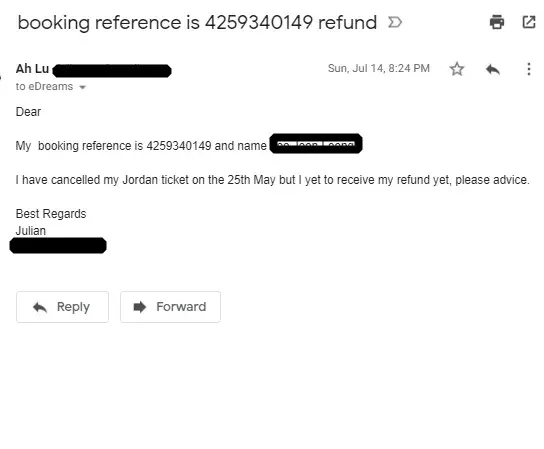 I gave edream a call, took me 10 to 15 minutes waiting time. The consultant said he is sorry but they still did not get the refund from Jordan Air yet. Told me to wait 72 hours or more. And gave me email address to converse with them. This whole call cost me almost 40 minutes and oversea charges $$.