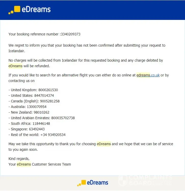 eDreams has left an official reply on this complaint.