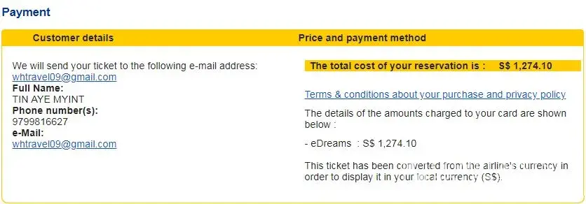 But till May 19, 2018 we got no response from eDreams customer service at all. I even tried to call Customer service at Singapore Office but they transfer my call to one person to other again and again and they even hang up the phone. You eDreams owe me S$ 1, 274.10 and i want to know how you customer service team can solve this problem for me as soon as possible.