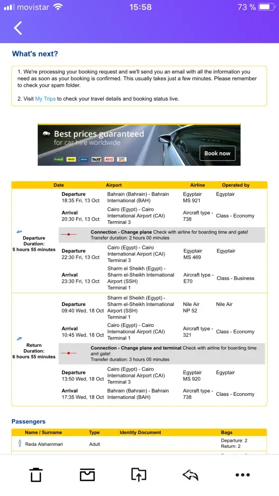 My bad experience did not stop there! After finally booking the flight and receiving the booking reference number I received an email for my check-in for the flight which was supposed to be canceled.
