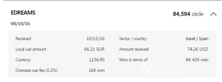 Its reallly fraud and pls letme know why eDreams deducted 66.21EUR or 74.26 USD or 84, 426KWON from my account...