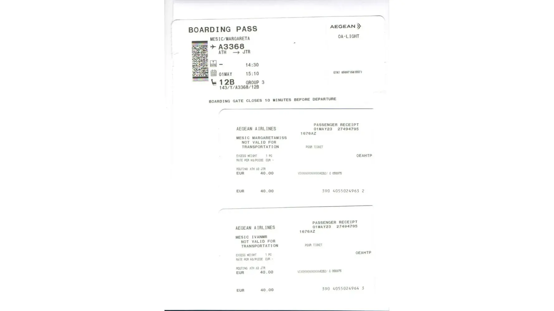 we booked flight from Athens to Santorini and back through your e-dreams platform, booking reference is [protected] for two passengers, names: M.M. and I. M, and it included 2x Hand luggage per passenger in the price. When we came to boarding, Aegean staff marked us as OA-LIGHT (which means hand luggage not included) and we paid 40 EUR per passenger at the boarding gate, total 80 EUR.