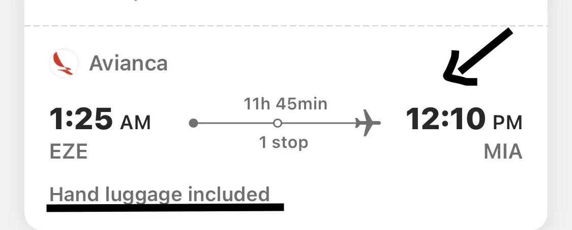 EZE (1:25am) -> MIA (12:10 pm) 11hr 45min with Avianca Airlines May 2 2023.
