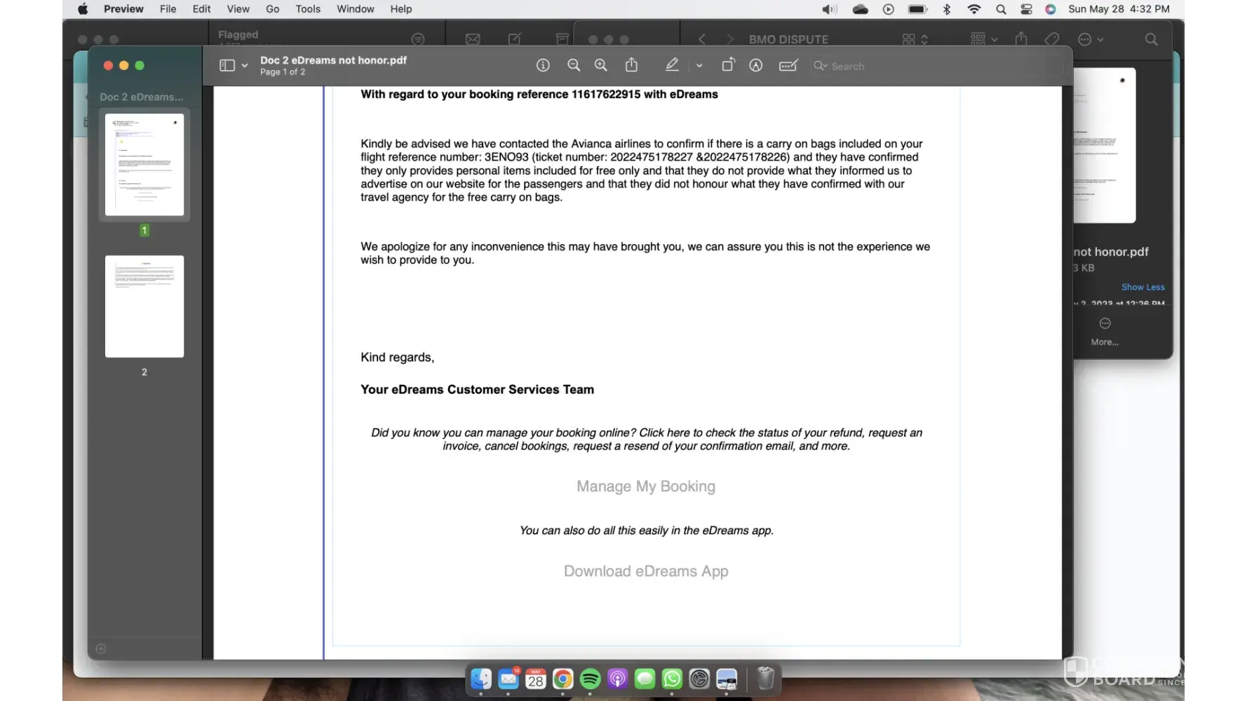 The dispute is NOT ABOUT LUGGAGE COSTS, this is about eDreams selling a service they cannot fulfill and expecting the consumer to be financially obligated to take what is issued regardless of what was advertised and purchased. This shows a continuation of the same misleading practices that led to the lawsuits by Ryanair and German courts rulings regarding misleading practices
