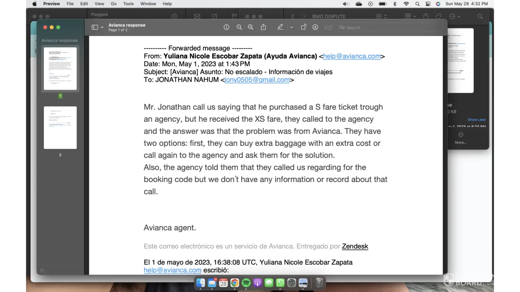 When we approached eDreams we were told by your reps that they (eDreams) would contact the airlines directly. The agent then sent confirmation that eDreams had spoken directly to Avianca and that