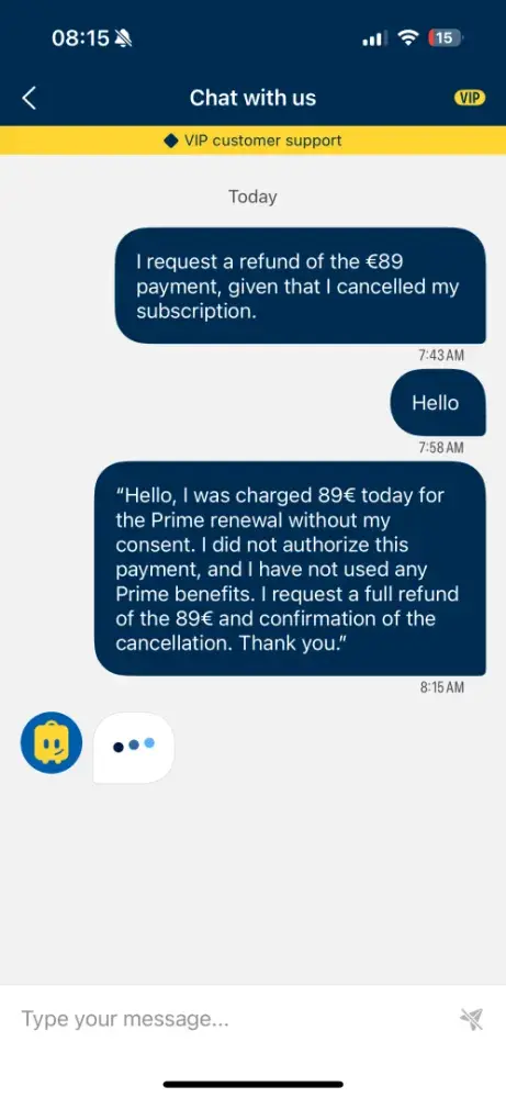 I was charged 89€ by eDreams for a Prime Membership renewal that I did NOT authorize.