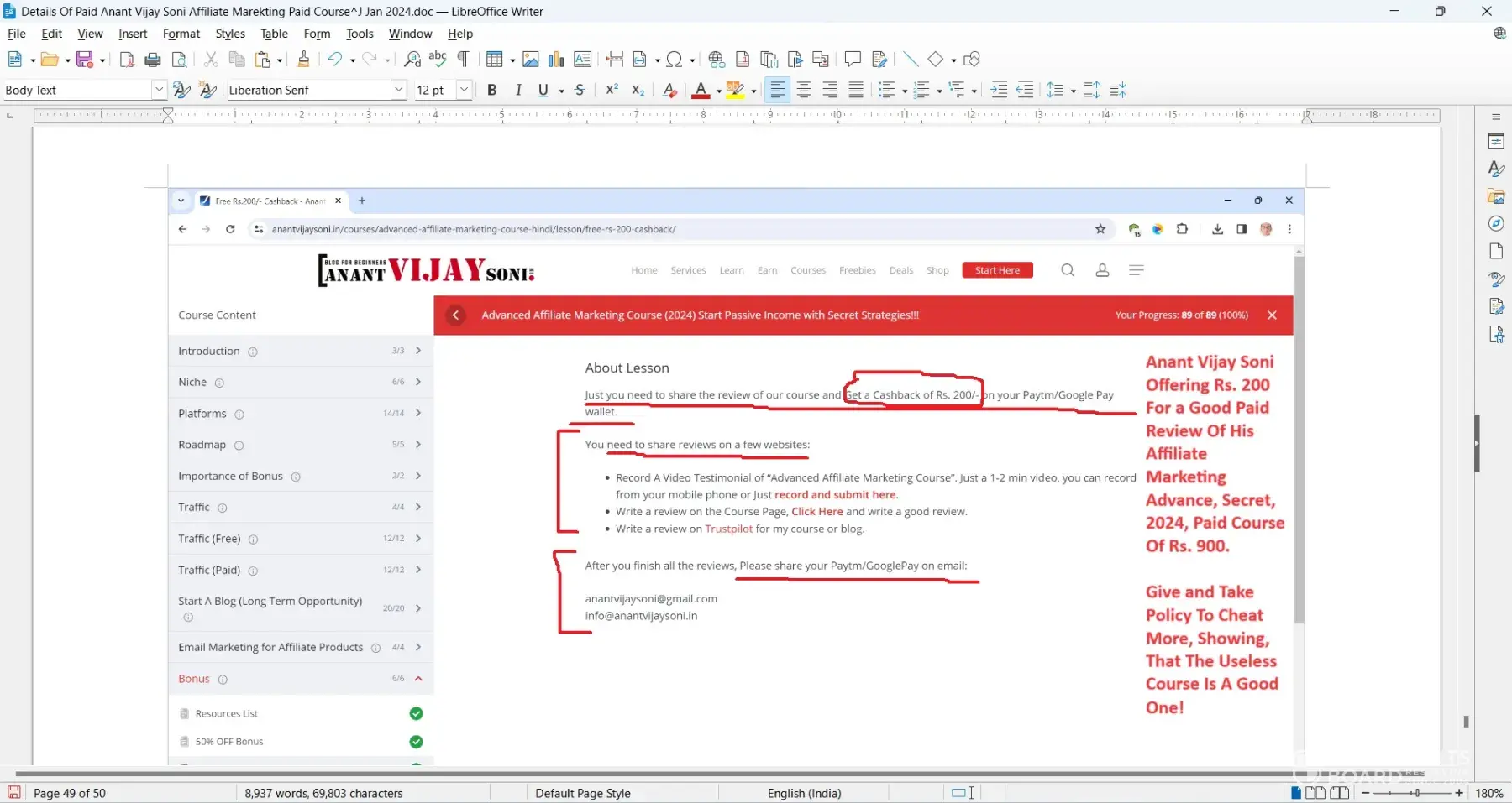Outdated & basic course sold for rs. 900 promising it to be of 2024 & having secret tips which were all lies & offered rs. 200 bribe for paid good review! Cheating by mr. Anant vijay soni -anantvijaysoni.in Hi Reader, I bought Anant Vijay Soni’s Affiliate Marketing Advance (2024) course on 07–01–2024 as a bundle offer (two courses) trusting hi...