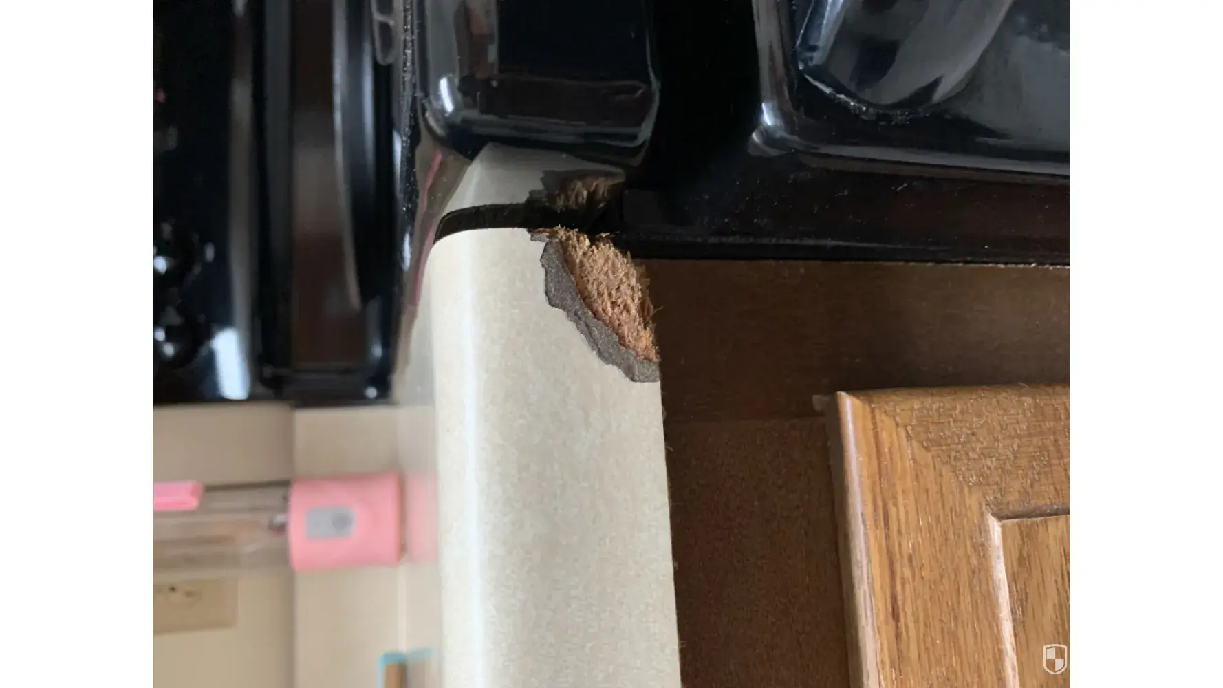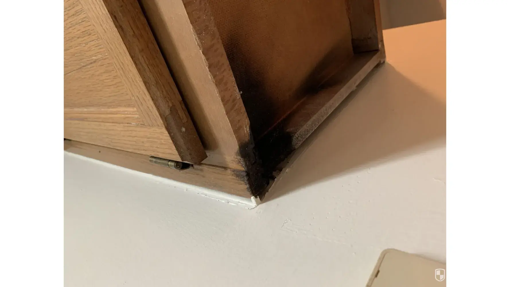 - Our kitchen cabinets have multiple chips and cracks, and one corner was charred black, like it had caught on fire : (The walls were dirty too, some of our closet doors and pantry door were broken. The bathroom exhaust fan was falling out of it's socket in the ceiling...