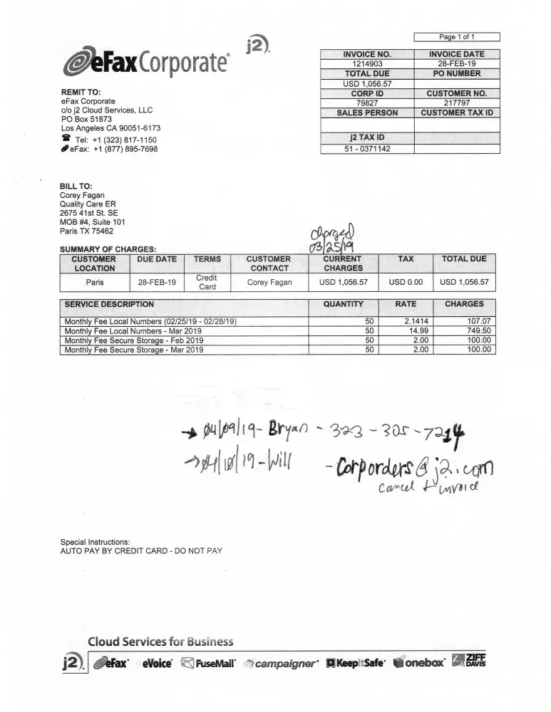 I initiated a chat. After back and forth on what I wanted (cancel and refund of recent charge), the agent asked me to provide proof that I had cancelled last year. Without this, they would not credit the $50 or even $48 for remaining 50 weeks. I searched my email, nothing form eFax in over a year. No cancel notice form last year, no billing notices in any of recent years. I mentioned I would put dispute on CC charge on my account, and post unfavorable reviews online and with Consumer Agencies - it didn't matter. Over the last 3 years, the account that I signed up for a free trial (at the time $15/year) has cost me $115 and I have sent two faxes of a couple pages each, last in 2020. Even now, I have no confirmation email, but I made sure to save the chat record. Consumers shouldn't have to worry about things like this, but I fully expect a charge next year from this unethical outfit. It's a shame, as the product itself, while overpriced for me, works fine. I wonder how they stay in business if they need to bilk the consumer this way.