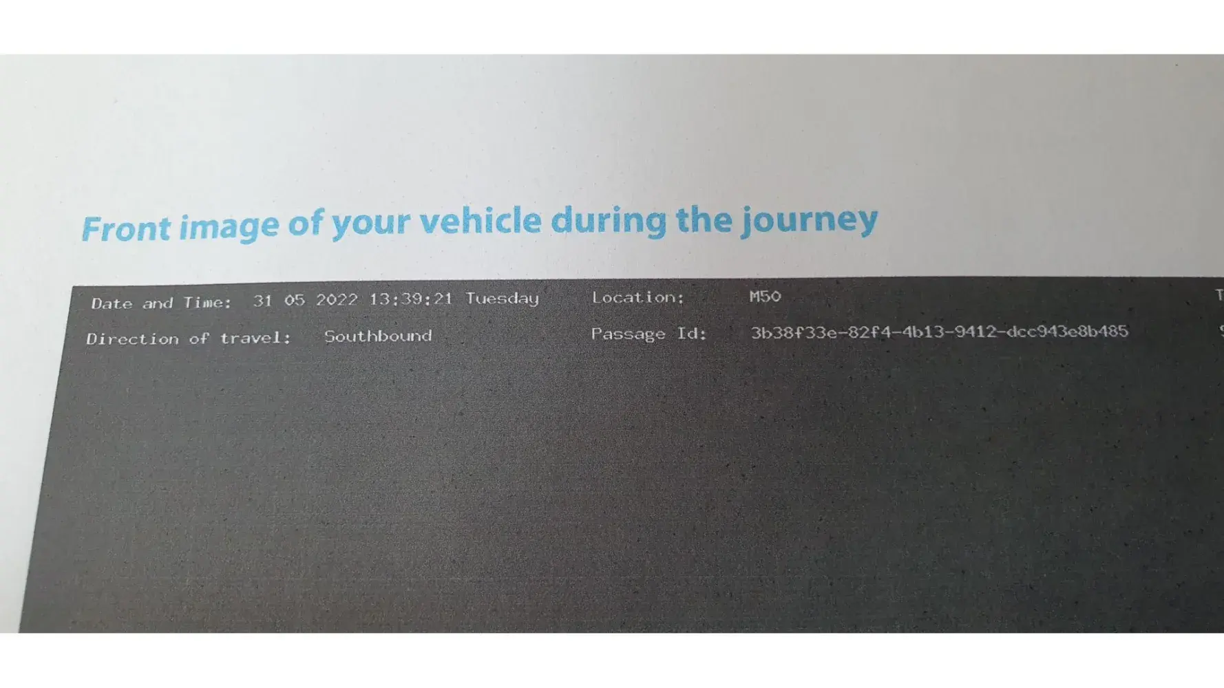 I travelled from Galway to Dublin port using the M50 on 7Sept. It was stressful as we had a puncture to fix while at the port before boarding the ferry. I received a penalty charge letter with photo of car on 22Oct, charge was not excessive £7.13 so paid it.