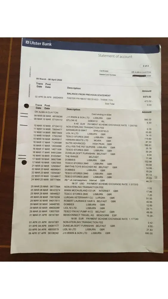Further amount has been taken by yourselves...please see image of my sterling bank account statement.