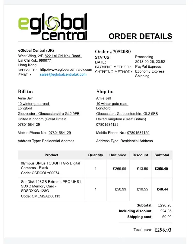 - 13.10.2020 I ordered 2 items from eglobalcentralit.com