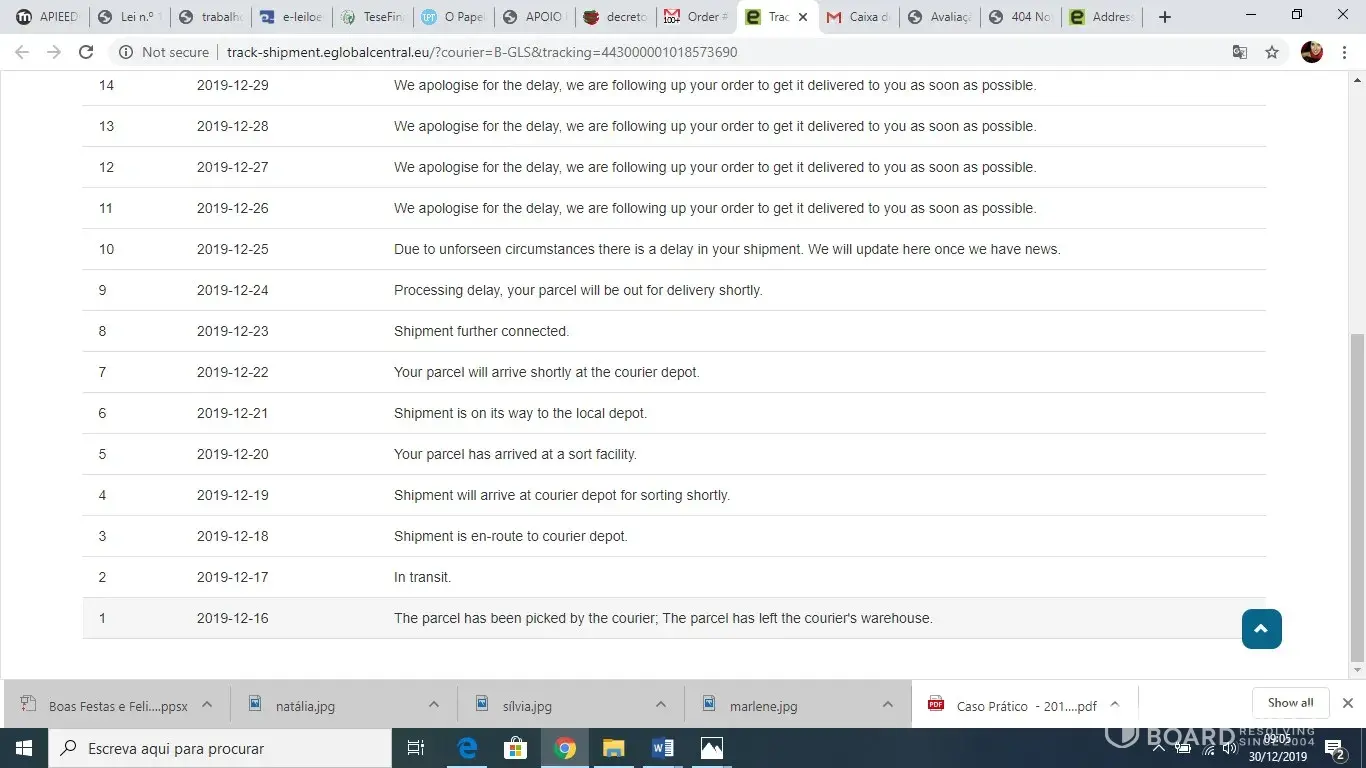 Everyday I check the shipment status and the same " Problem" Appears. As a customer, I can do anything as I have no information about the company which caring the shipment (DHL, UPS...)