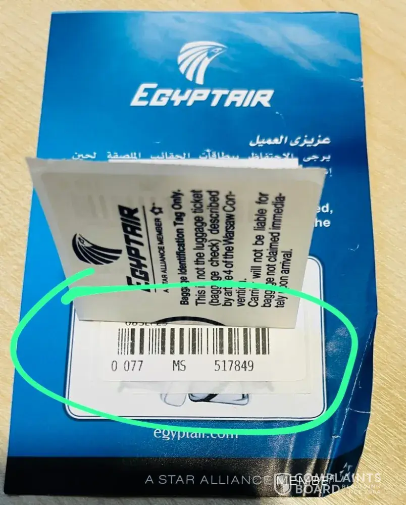 My luggage was checked in at Jeddah airport and I didn't receive it on London airport. The luggage tag number is: MS798099 and the flight number was: MS779.