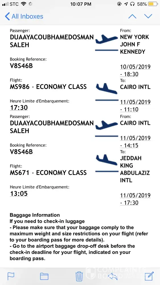 Egyptair said they can do nothing about it !